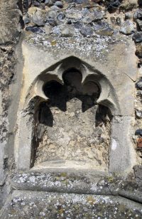 This aisle has a stoup by the South door and the remains of a piscina by the entrance to the south aisle chapel, the last part of the church to be built, was originally a chantry chapel funded by the Felton family in 1500. Its parclose screens are similar to those in St. Peters. They are tall cusped and crocketted arches with dense tracery above, topped by a vine trailing cresting.