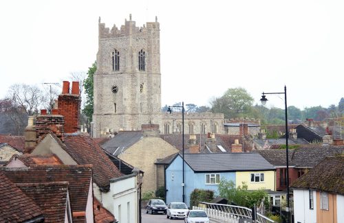 All Saints' was originally a Norman flint and rubble church, built for the new parish created in the south-western corner of the town at the time of the growing wool trade to serve the thriving centre of commerce and industry which Sudbury had become. The ford crossing the River Stour was quickly replaced by a bridge and a small chapel and dorter, long since demolished, was established on Ballingdon Hill as a respite for travellers. In 1150 the church and the chapel with their lands were bought by Adam the Monk for the Abbey at St. Albans, in whose gift it remained until the Dissolution, when Thomas Eden, Clerk of the Star Chamber, became patron of the living in 1551. The church was rebuilt in the early 1300’s in the decorated style (1280 – 1380) and again in the 15th century, principally in the perpendicular style (1375 – 1550) leaving only the chancel from the previous structure. At this time Sudbury was as important a town as Colchester and Norwich and extremely prosperous having three fine churches within its bounds – rare for so small a town.